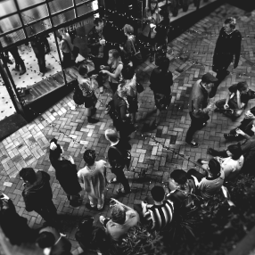 Caught between the inside and outside of the gallery, an interstitial space emerges. It’s a discursive space built by readers wanting to configure new relations to the space. The conversation revolves around the form, function and politics of the gallery space.